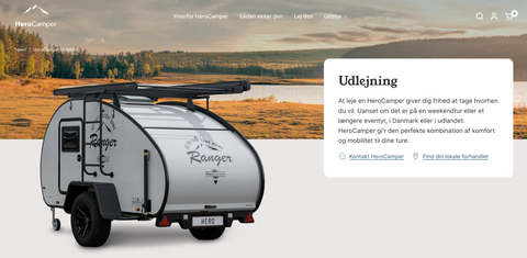 HeroCamper står nu med en hjemmeside med et helt nyt design og en ny visuel identitet som BRANDMAKERS har designet og som vi har implementeret i Shopify. hvor der er tilføjet brugbare funktioner og custom designet løsninger, der imødekommer de aktuelle behov fra deres kunder. Derudover har migreringen til Shopify sikret en skalerbar, brugervenlig og driftsikker platform.